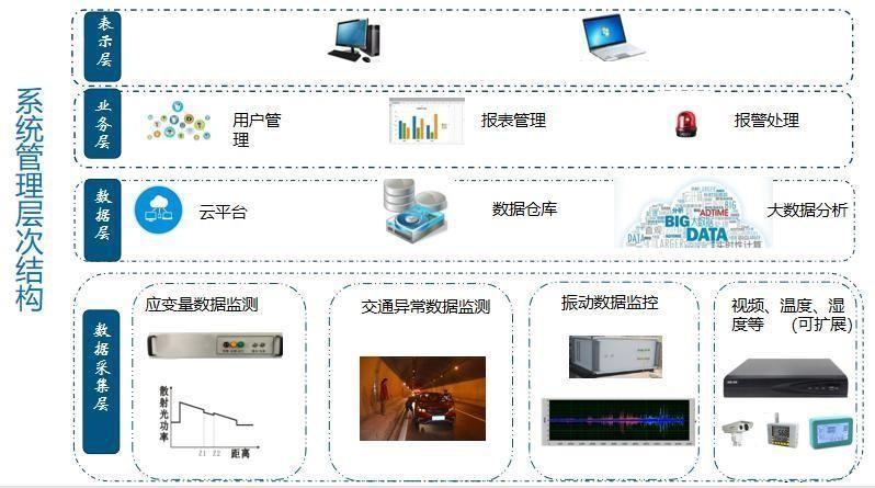 迪博科技針對運輸行業(yè)日益迫切對隧道健康安全監(jiān)測的需求,開發(fā)出了一種基于光纖傳感技術的隧道健康監(jiān)測預警系統(tǒng)。隧道監(jiān)測系統(tǒng),采用光纖感測、物聯(lián)網(wǎng)、大數(shù)據(jù)、模式識別、云計算、BIM 等技術,自動進行“數(shù)據(jù)采集、數(shù)據(jù)存儲、數(shù)據(jù)分析”,智能分析隧道運行安全大數(shù)據(jù),精準監(jiān)測預警隧道運營期間的襯徹掉塊、泥石流和危巖落石、頂部非法挖掘鉆孔侵害、拱頂滲漏水、內部火災、分層和縱向不均勻沉降、環(huán)向應變、變形縫位移、異物入侵、爆破和微振動、圍巖水(土)壓力、有害氣體、鋼筋銹蝕、內村(管片) 結 構受力等數(shù)據(jù)和事件,進行精準監(jiān)測和異常事件定位,能聯(lián)控攝像機、無人機、消防等相關設備。系統(tǒng)實現(xiàn)了“研發(fā)、生產(chǎn)、實施“為一體的交鑰匙項目,能可靠實現(xiàn)隧道運營安全管理工作的“數(shù)據(jù)化、可視化、信息化、精準化”。系統(tǒng)的科技創(chuàng)新和技術水平位于行業(yè)前列。
